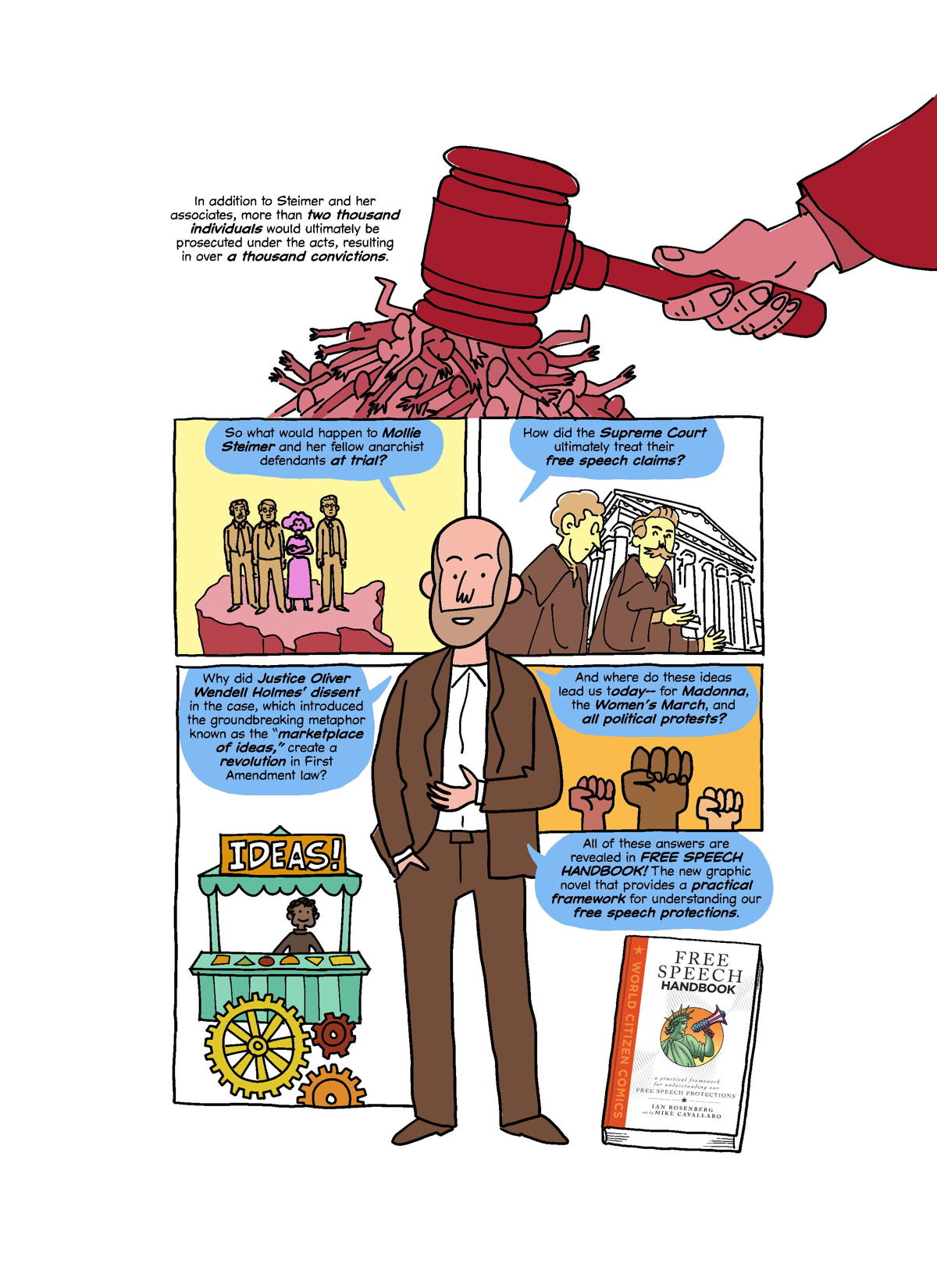 The FREE SPEECH HANDBOOK (First Second, on sale 11/2/21) is written by media lawyer Ian Rosenberg and Eisner-nominated artist Mike Cavallaro as part of their